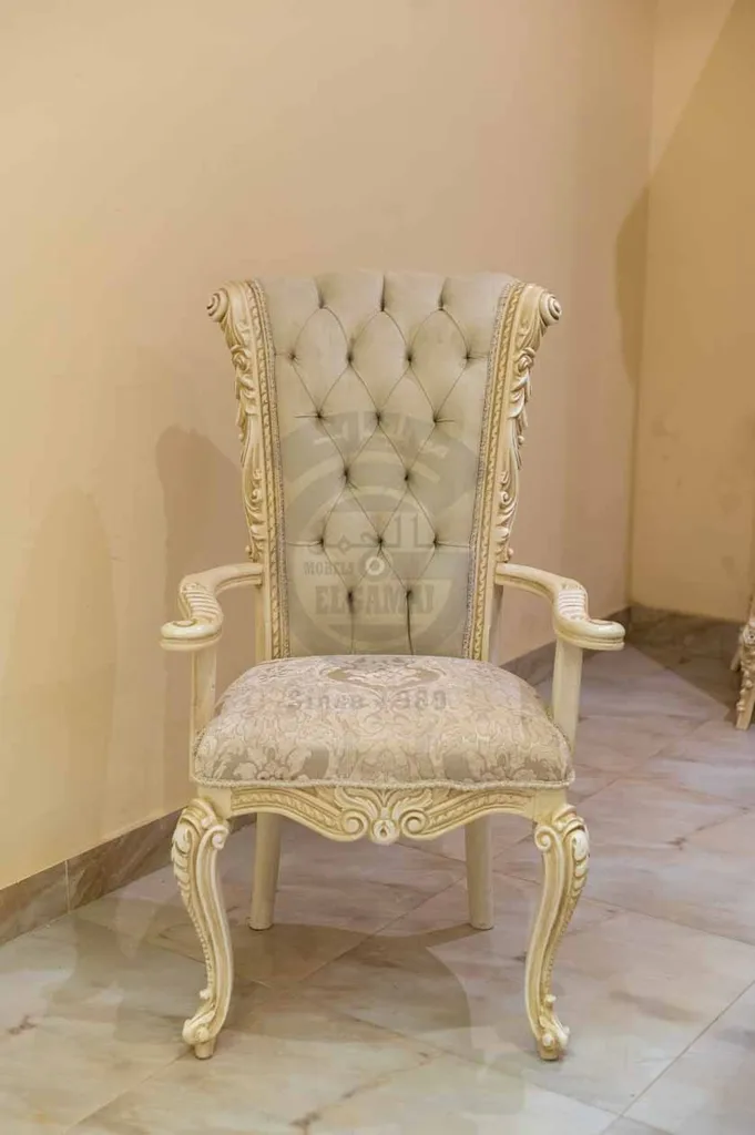 تم تصنيع غرفة الطعام من أخشاب طبيعية عالية الجودة تضمن المتانة والقوة وطول العمر الافتراضي، مع أويمة حفر يدوي متقن تعكس مهارة التصنيع اليدوي والاهتمام بأدق التفاصيل.