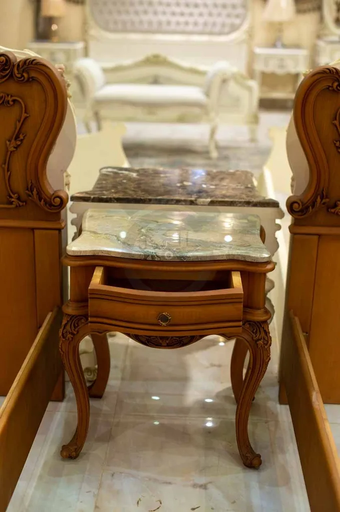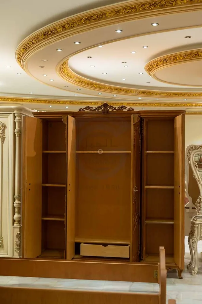 تتكون الغرفة من عدد 2 سرير كلاسيك بتصميم متناسق، دولاب ملابس عملي يوفر مساحات تخزين مناسبة، كومود أنيق، وتسريحة كلاسيك تلبي احتياجات الاستخدام اليومي بأسلوب راقٍ.