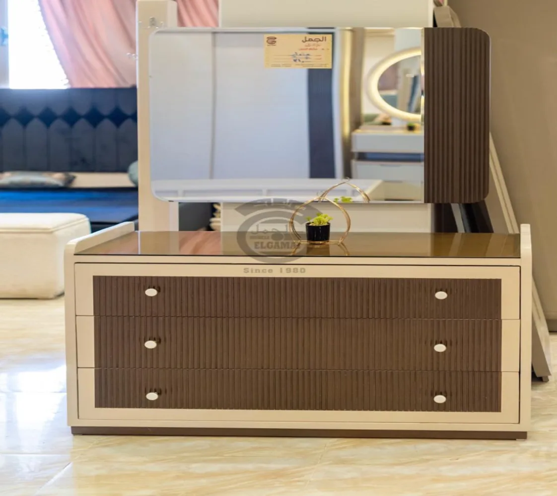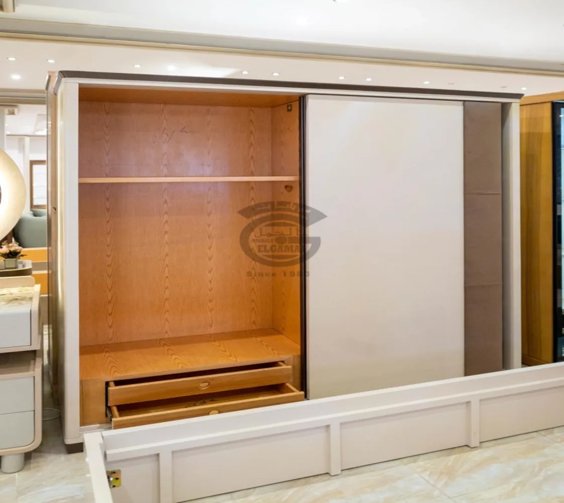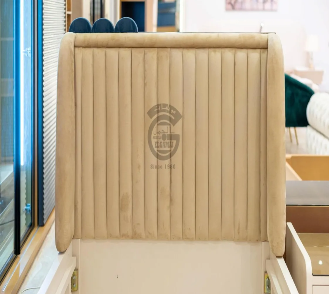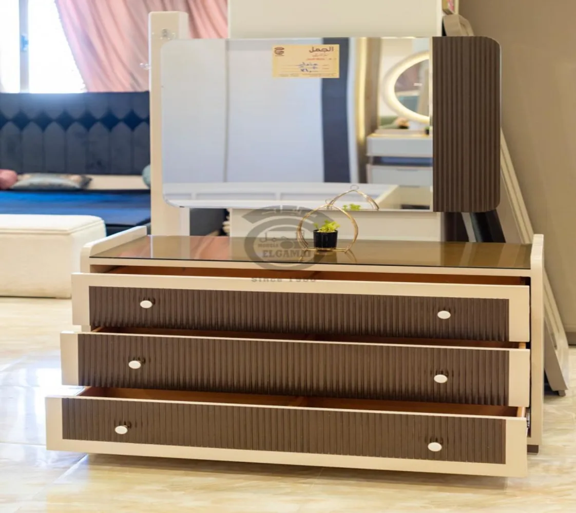 غرفة شباب وأطفال مكونة من : 2 سرير . دولاب مودرن . كومود . تسريحه . بف تسريحه الغرفة مصنوعه من أخشاب طبيعيه بطابع عصرى مميز يليق بمنزلك